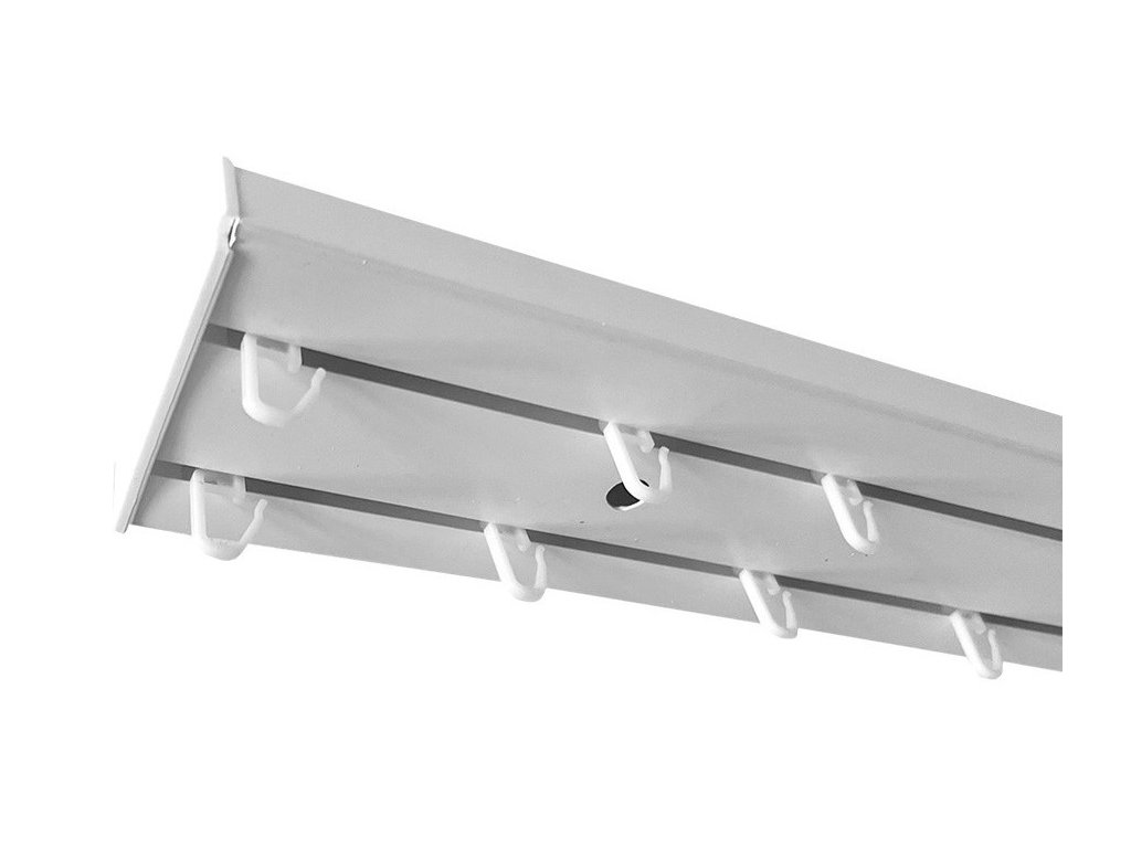 Popis produktu – Dvojkolejnice osazená- jezdci, koncovky, záslepky. Počet jezdců je 20 ks na bm kolejnice. Kolejnice zakrátíme na požadovanou míru za příplatek 25 kč. Otvory na kraji kolejnice pro vyjetí jezdců(používá se když je kolejnice od stěny ke stěně)Vám na přání vyřízneme, uvedte prosím v Poznámce k objednávce. Šířka kolejničky je 77 mm.