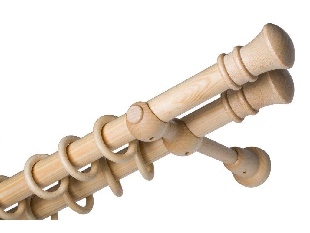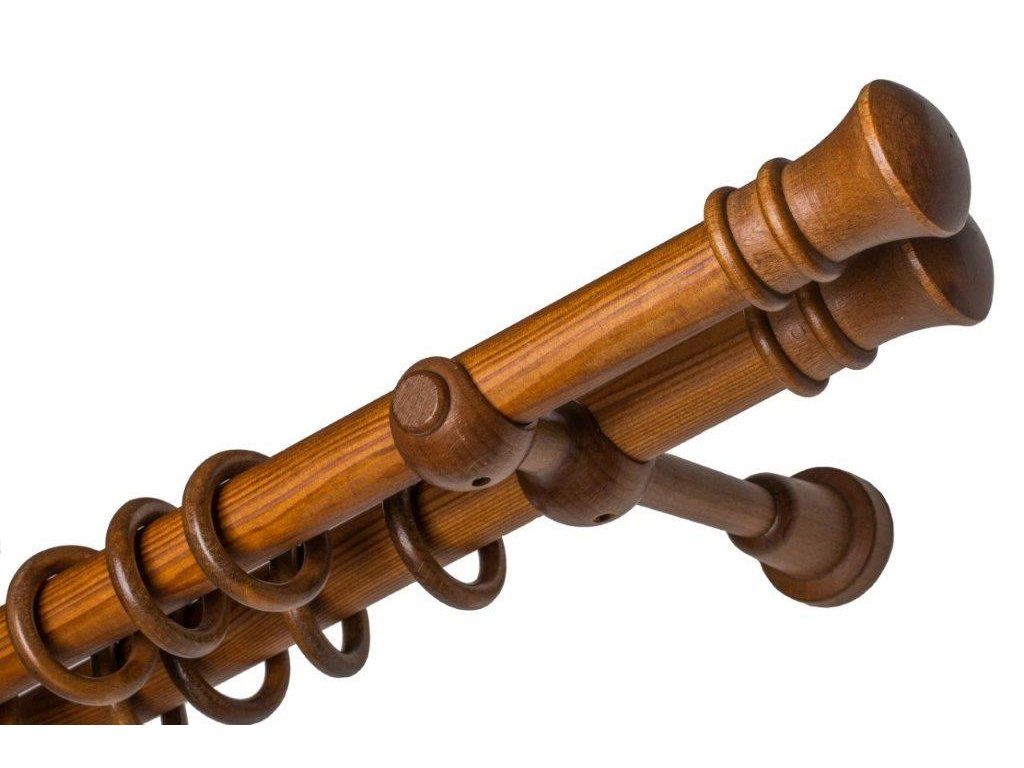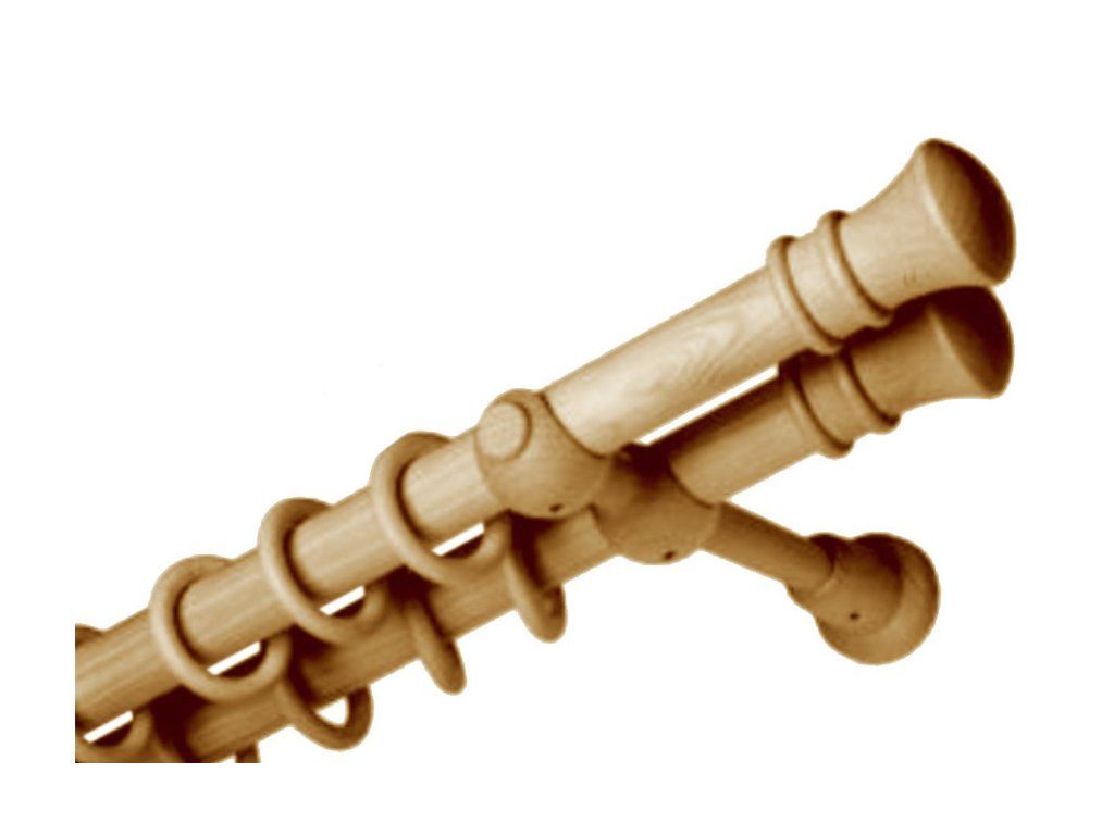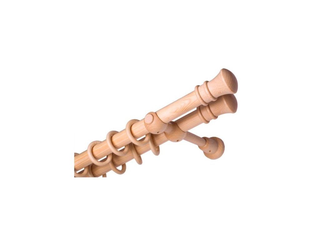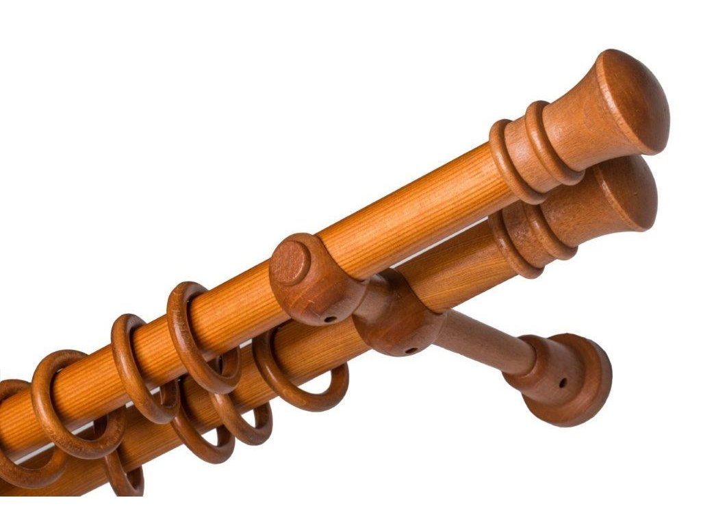 Popis produktu – Garnýž - dvoutyč KDU. Nová řada dřevěných garnýží v provedení borovice, buk, zlatý dub, višeň, dub světlý. PEVNÉ A PRAKTICKÉ OTEVŘENÉ DRŽÁKY. Dvoutyč komplet obsahuje: tyč, NASAZOVACÍ-OTEVŘENÉ držáky, koncovky, kroužky 10ks/bm tyče. Tyč je vcelku, nad 220 cm se středovým držákem. Konzole do 220 cm - 2 ks, nad 220 cm - 3 ks. Nezapomeňte na háčky či žabky, standardně nejsou součástí kompletů a je potřeba tyto doplňky objednat zvlášť.