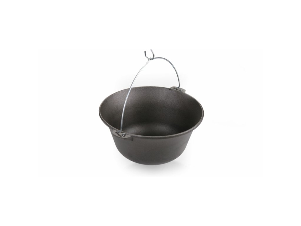 Popis produktu – Kotlík litinový 15 l Magyar. Silnostěnný 6 mm. Ke kotlíku je vhodná nerezová poklička na 15l kotlík. Materiál: litina, nerezová rukojeť. Litinový kotlík na guláš je opatřen proti korozi vrstvou vosku. Vyčištění před prvním použitím: nad otevřeným ohněm krátce prázdný kotlík nahřejte, potom tekutým čisticím prostředkem na nádobí důkladně kotlík vymyjte. Čištění po použití: jen neutrálním tekutým čistícím prostředkem na nádobí .Po použití kotlík umyjte a natřete stolním olejem nebo sádlem, kotlík tak ochráníte proti rezavění. Při vaření nepoužívejte kuchyňská náčiní, která mohou poškrábat povrch. Rukojeť uchopujte pouze přes utěrku nebo v rukavici. Obsah kotlíku: 15 litru. Hmotnost kotlíku: 10 kg. Možnost dokoupení trojnožky nebo kotliny.