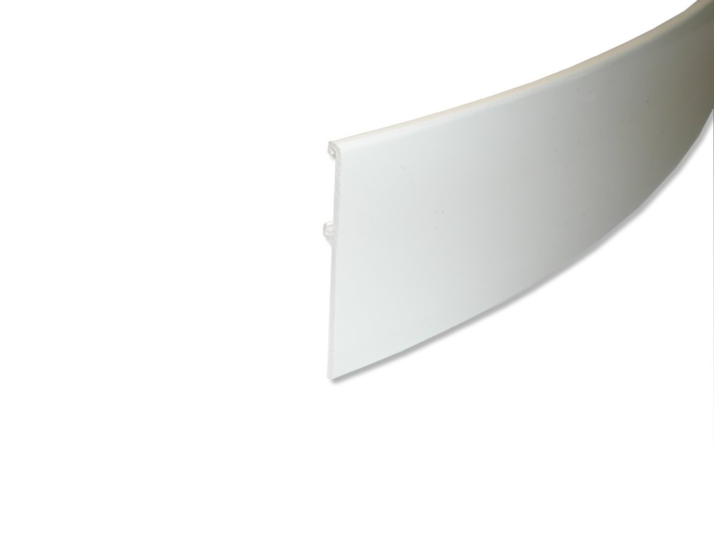Popis produktu – Krycí čelo bílé. Cena je udávána za běžný metr. Lze zadávat na dvě desetinná místa. Při použití koncových oblouků je třeba objednat navíc 45 cm krycího čela.