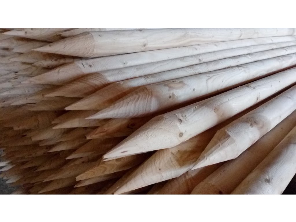 Popis produktu – kůl frézovaný Ø 6cm, délka 200cm, bez impregnace. Dřevěné kůly se špicí, neimpregnované, výška 200 cm a průměr 6 cm. Kůl je z jedné strany zakončen špicí z frézovaného jehličnatého dřeva