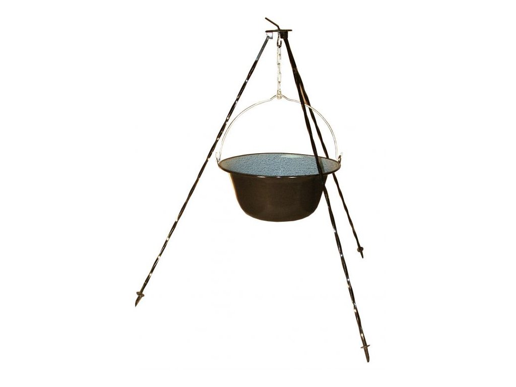 Popis produktu – smaltovaný kotlík 10l, poklice nerez a trojnožka 1,2m.