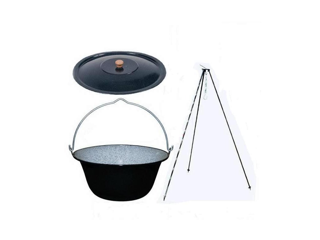 Popis produktu – smaltovaný kotlík 30l, poklice smalt a trojnožka 1,2m
